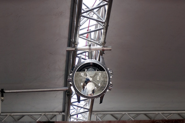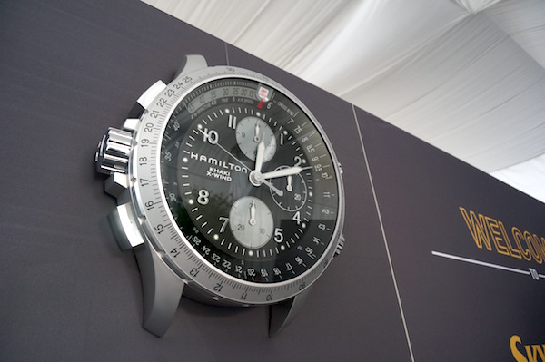 そして入り口にはハミルトンカーキX-WINDの掛け時計が飾られて、世界中どこでもエアレースファンを迎え入れています。
