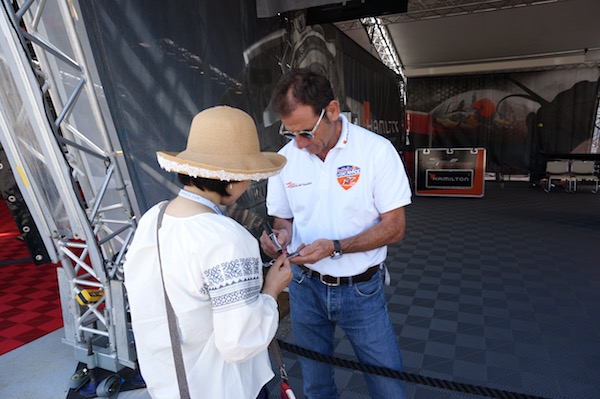 ハンガー入場口に、さっそくハミルトンが!