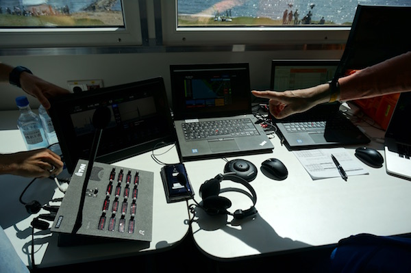 レース中、この場所でスタッフはニコラスのレースをチェックしています。