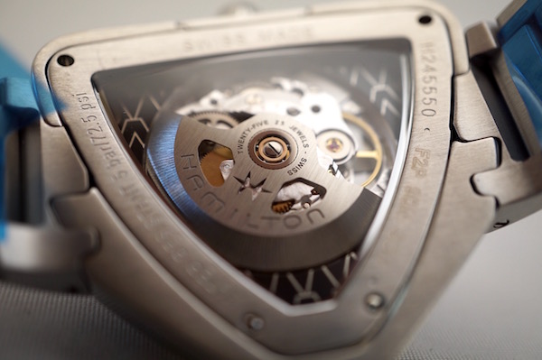 ハミルトン自慢の80時間パワーリザーブムーブをさり気なく堪能できます。