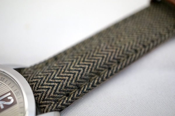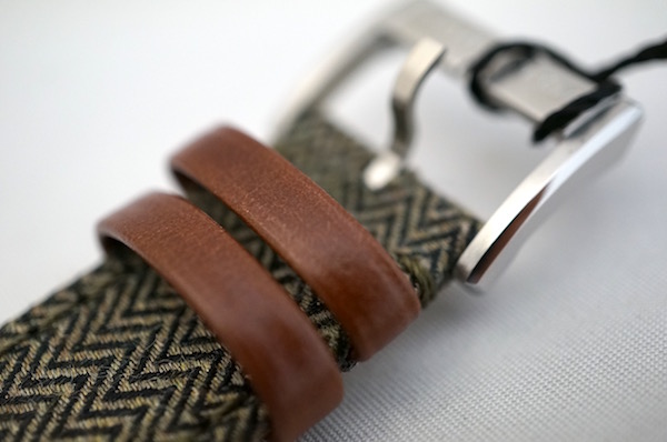 ヘリンボーン柄のベルトも魅力です。
