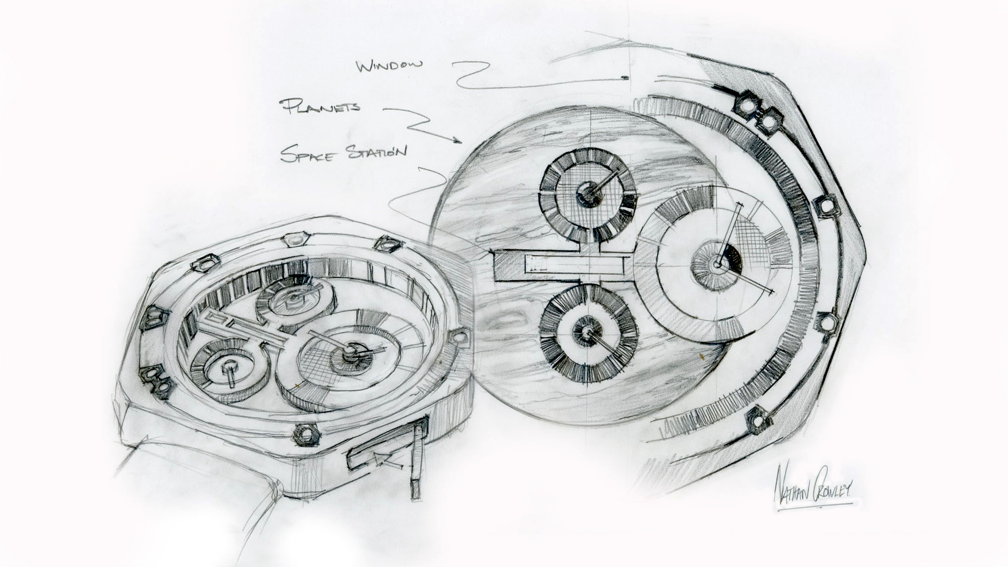 映画『インターステラー』 の美術監督であるネイサン・クロウリーがデザインを手掛け、ハミルトン社が制作を担当した宇宙という壮大なテーマを描くODC X-03。
