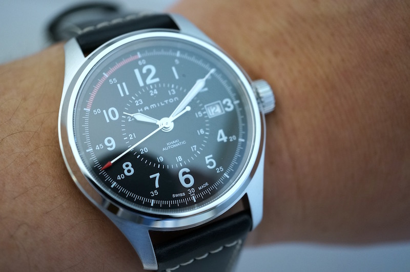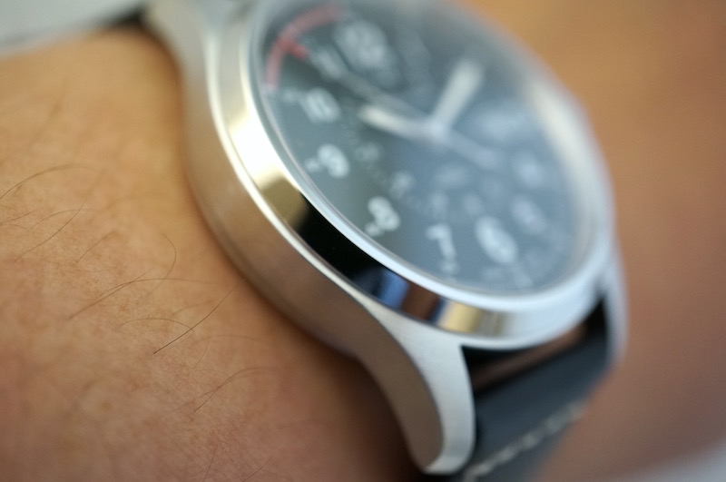 カーキ伝統のリューズと、実用的な厚みのケースです。