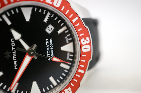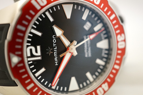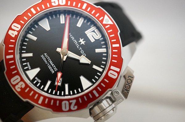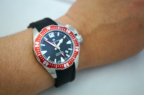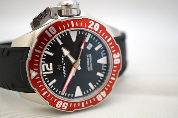 ■国内正規品ハミルトン カーキネイビーオープンウォーター 赤ベゼル ブラックラバー H77725335 ¥159,500
