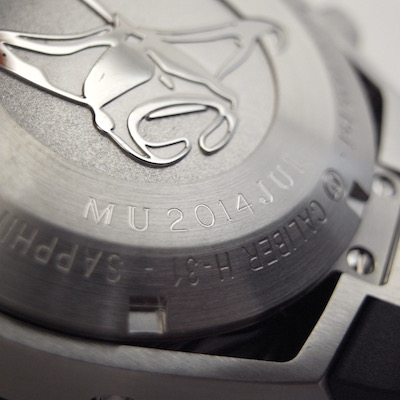 ステンレ ススチールの回転ベゼルには、グリップ性に優れたラバーがあしらわれ、裏蓋には壮大な海の世界を象徴するマンタのシルエットが刻まれている。