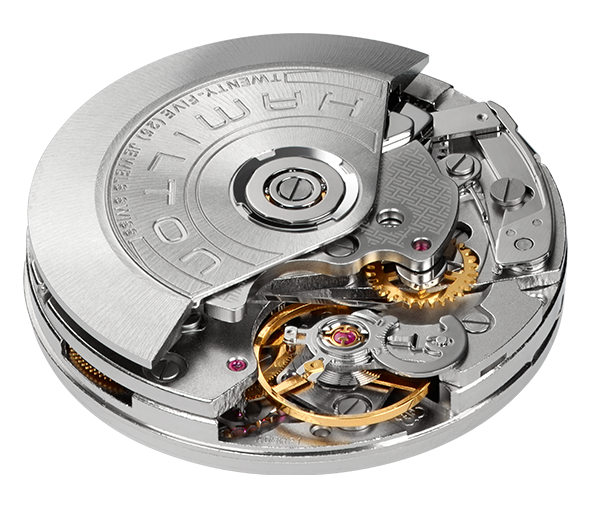 ブリッジには“H”のパターンがあしらわれ、スポーティでタフなタイムピースに最適なキャリバーです。