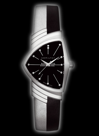小さなシャツのボタンほどの電池がセットされたムーブメント搭載、それまでのスプリング駆動式に比べて飛躍的に精度を向上させると共に、腕時計の常識とはかけ離れたその斬新なフォルムにおいて、ベンチュラは時計史に革命的な足跡を残した。