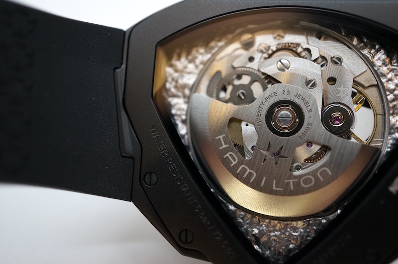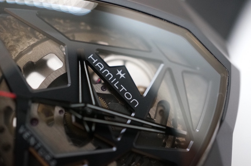 ハミルトン社と共同開発を行うスイスETA社製のスケルトン自動巻きムーブメント「H-10-S」。