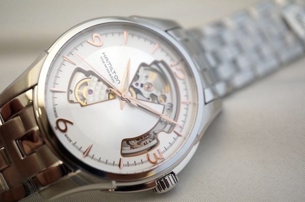 ジャズマスタオープンハートの最大の特徴は、ハートである時計のムーブメントの動きを見て楽しむことが出来る、オープンスタイルのダイアルデザインでは無いでしょうか。