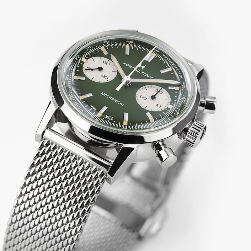 ハミルトン専用 H-51キャリバー搭載の新しい「イントラマティック クロノグラフ H」。