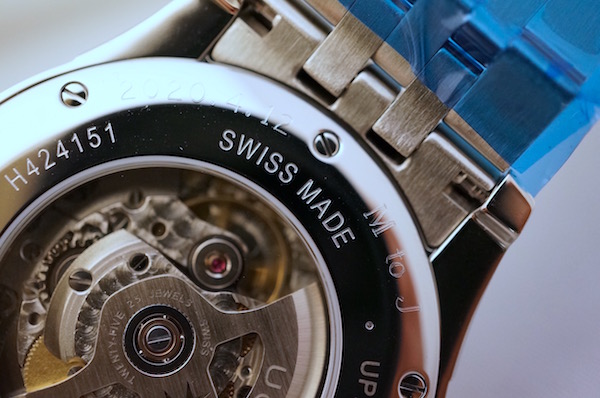 シースルーの裏蓋からその美しい動きを楽しむことができます。