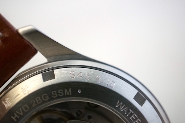 裏蓋はシースルーバックで、オートマチック・ムーブメントのメカニズムを覗き見る事ができます。
