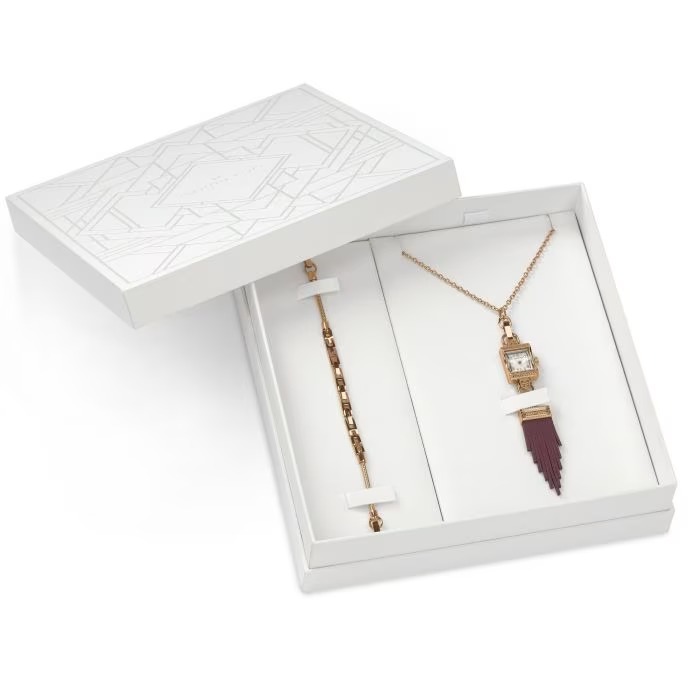 長さ調節可能なチェーンとフリンジ付きタッセルペンダントを組み合わせたネックレスとして、または繊細なチェーンブレスレットと組み合わせたタイムピースとしても着用することができます。
