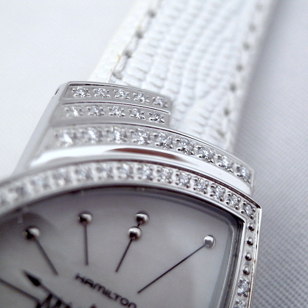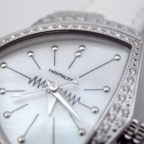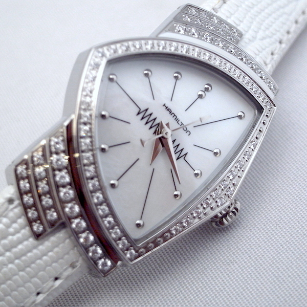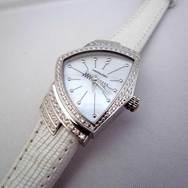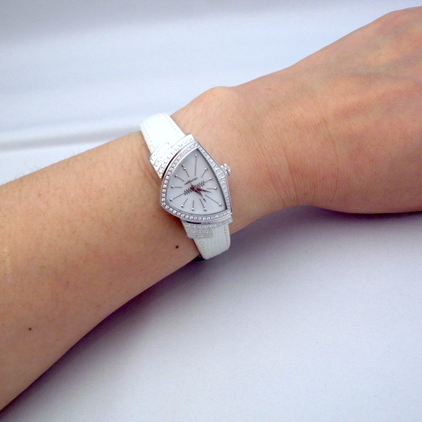 ハミルトンのフラッグシップモデルであるベンチュラにマザー・オブ・パール(MOP)を使ったダイアルにホワイトのパールストラップをアタッチした女性専用モデル レディーベンチュラMOPがラインナップしました。