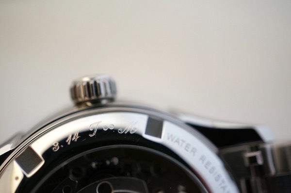 ご購入の記念とお祝いとして時計の裏フタにはご家族様のイニシャルを刻印です。