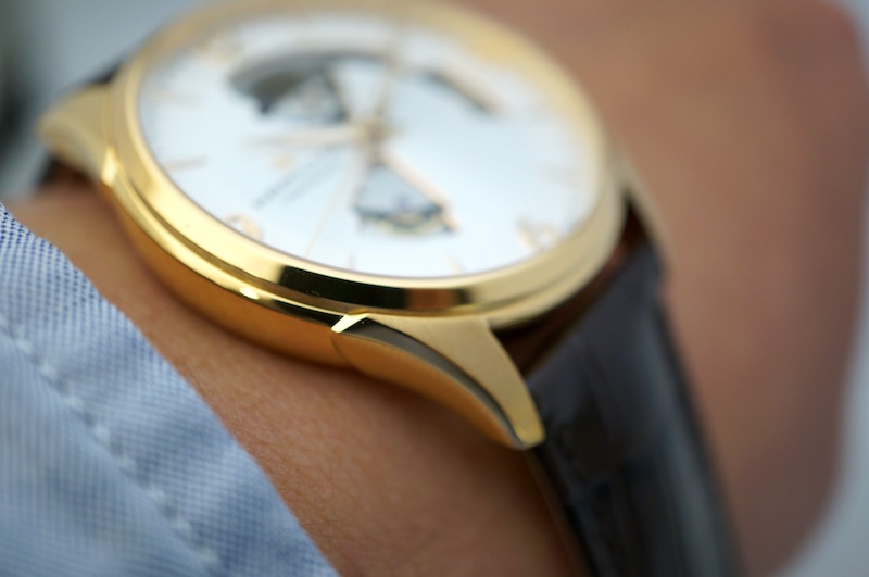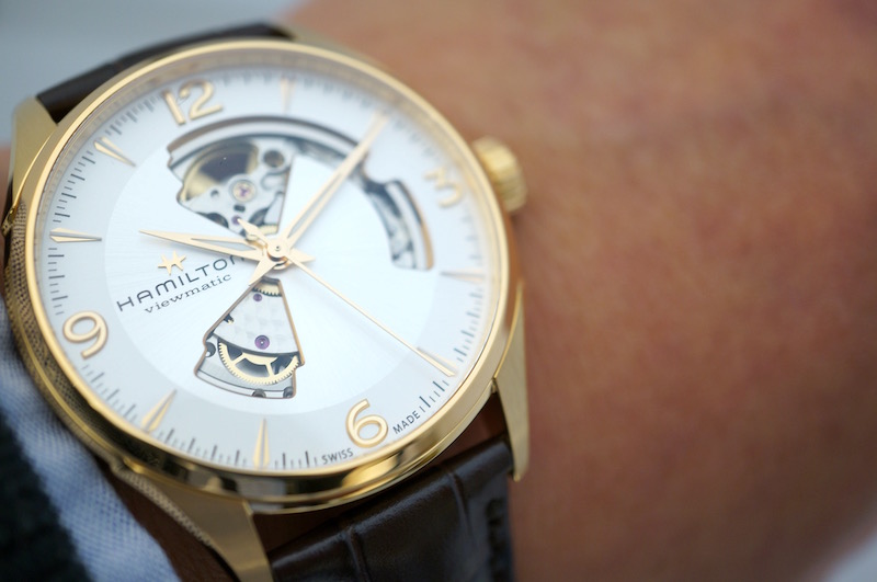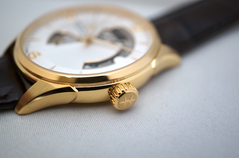 国内正規品ハミルトン ジャズマスタオープンハート42ミリ ピンクゴールド ブラウンカーフストラップ H32735551