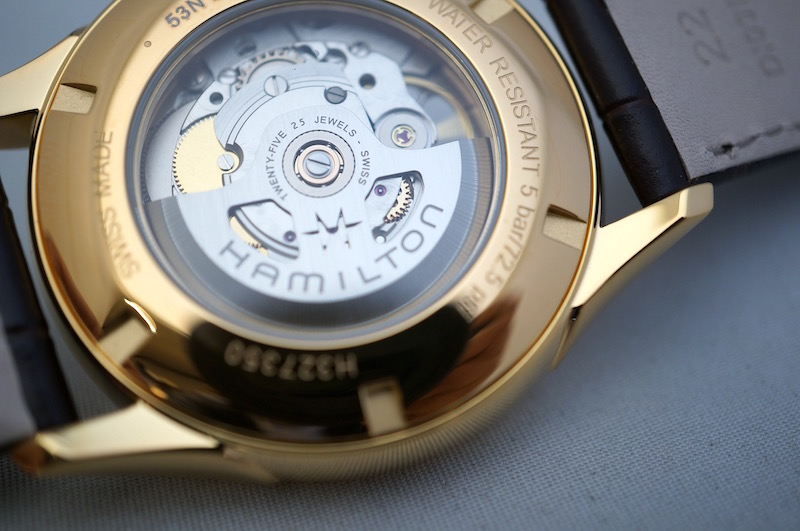 ETA社と共同開発をしたハミルトン自社製の80時間パワーリザーブムーブをセット済みです。
