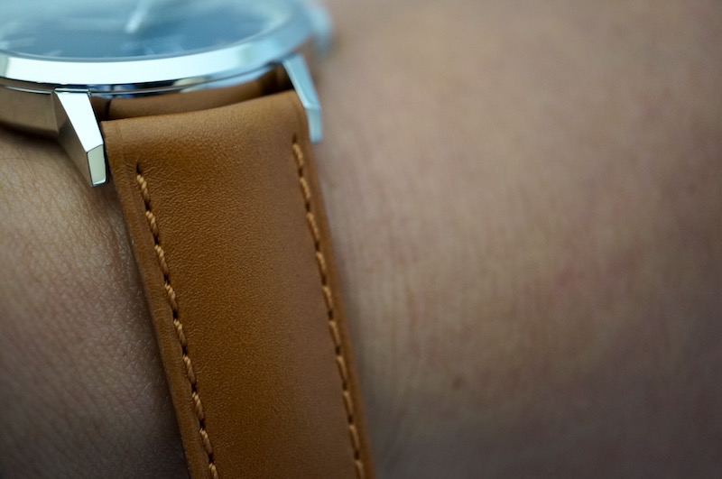 シンプルなデザインのブラウンカーフベルトとの相性も良いです。