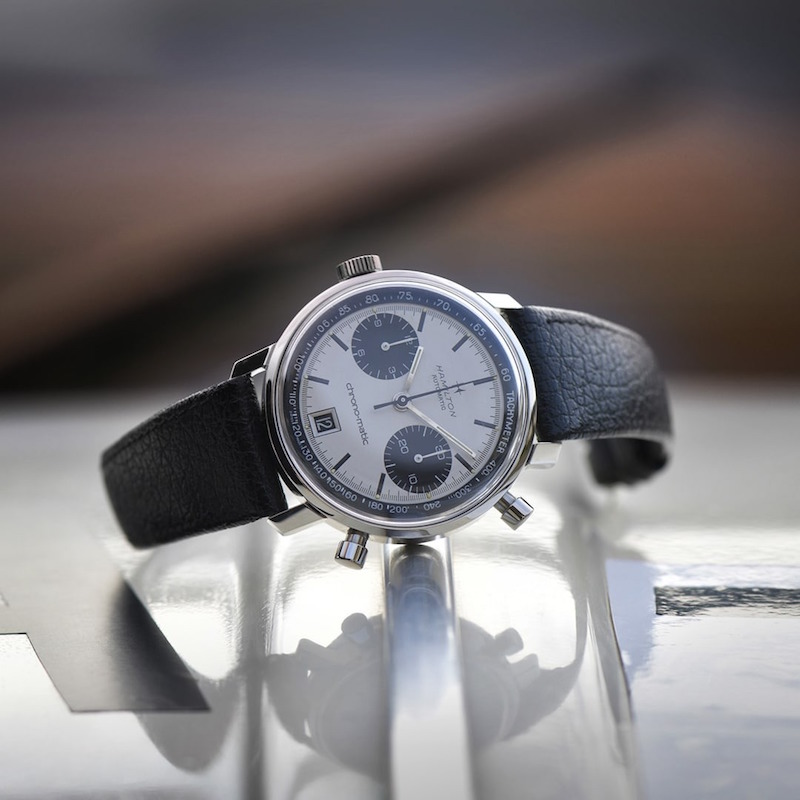新しいハミルトンのイントラマティック オートクロノは、ブランドの代表的ウォッチ1968を再定義したモデルとなります。