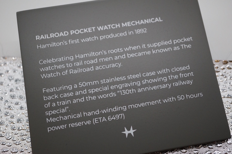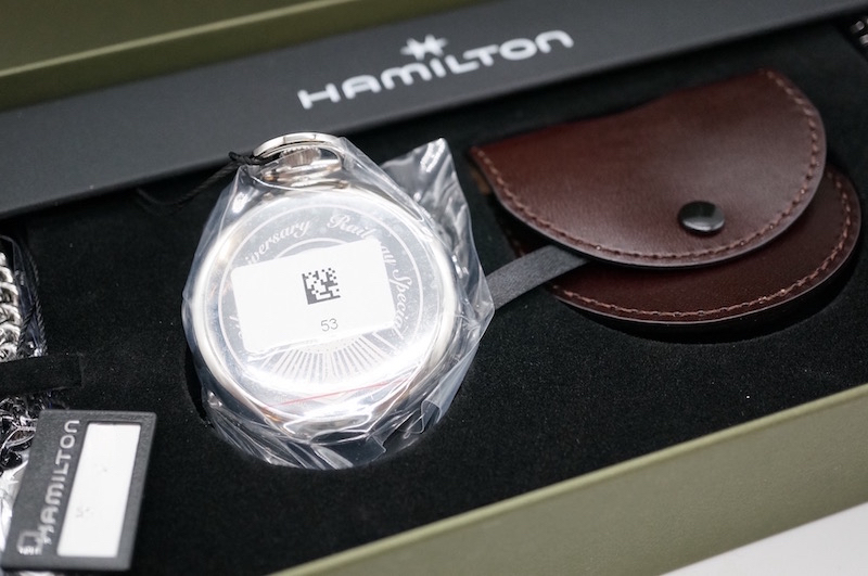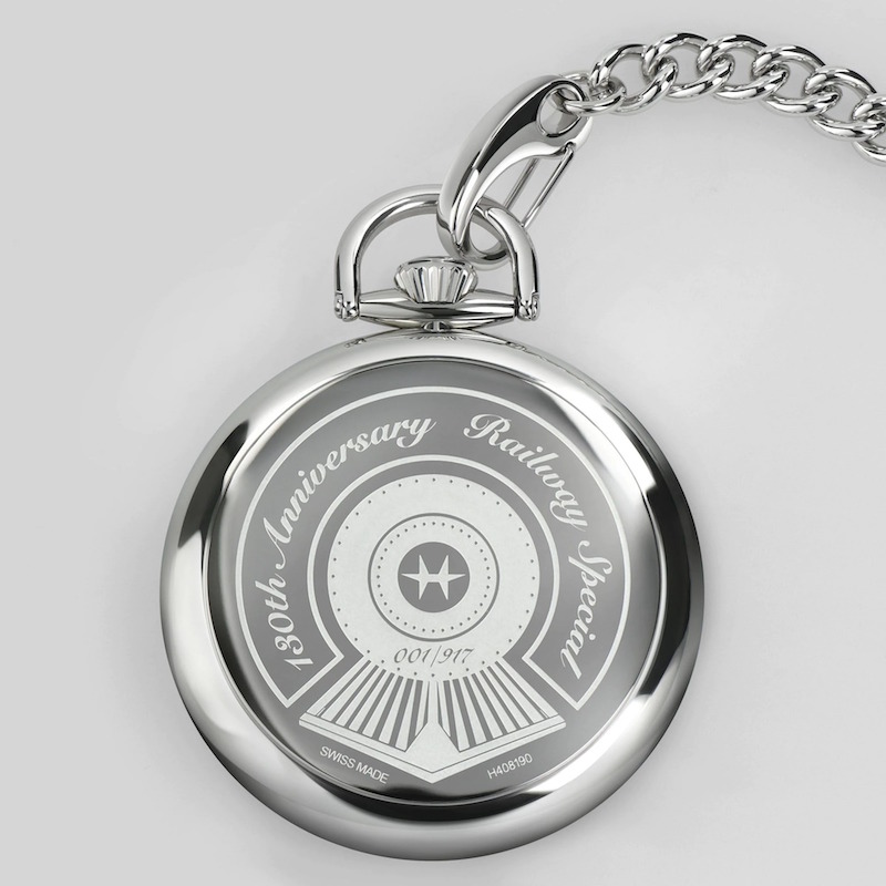 クローズドタイプのケースバックには、1892年に創業されたハミルトンが今年130周年を迎えることを記念して、“130th Anniversary Railway Special”というブランド アニバーサリーの文字が刻まれています。