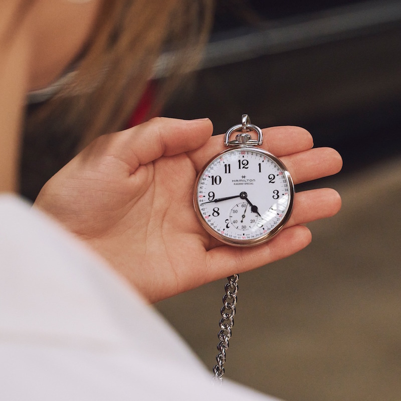 また、アラビア数字の大きなインデックス、ブラックラッカーの針、6時位置のスモールセコンドを備え、あらゆる特徴が相まって、精度にこだわり続けるハミルトンの歴史が鉄道用のポケットウォッチから始まったことを再認識できるモデルとなっています。