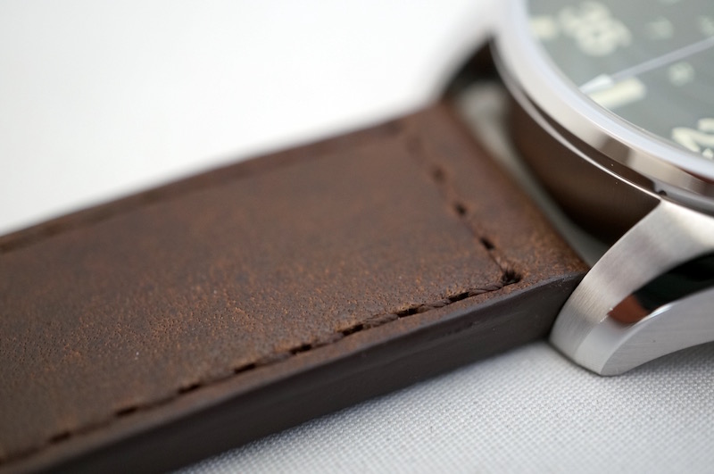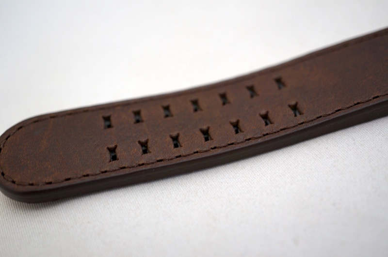 「カーキ パイロット Schott NYC」に使用されているレザーストラップはSchott NYCがこのモデルのためにセレクトした特別なレザーを使用しました。
