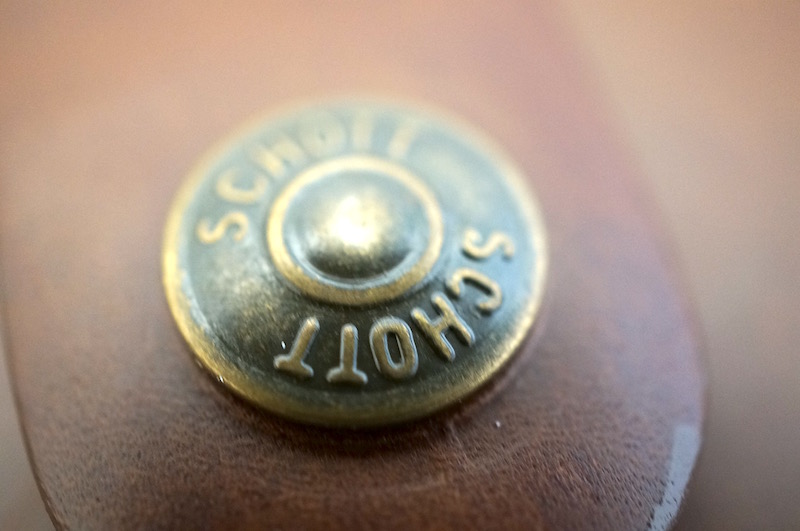 スナップボタンにもSchott社のマークがもちろん入っています。