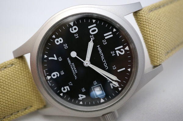 ■カーキ・フィールド・メカ 38ミリ ブラックダイアル ベージュキャンバスストラップ