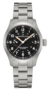 ハミルトンのフィールドウォッチとしては初のパワーリザーブ表示搭載モデルであり、伝統と革新を見事に両立させています。