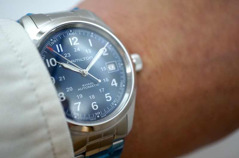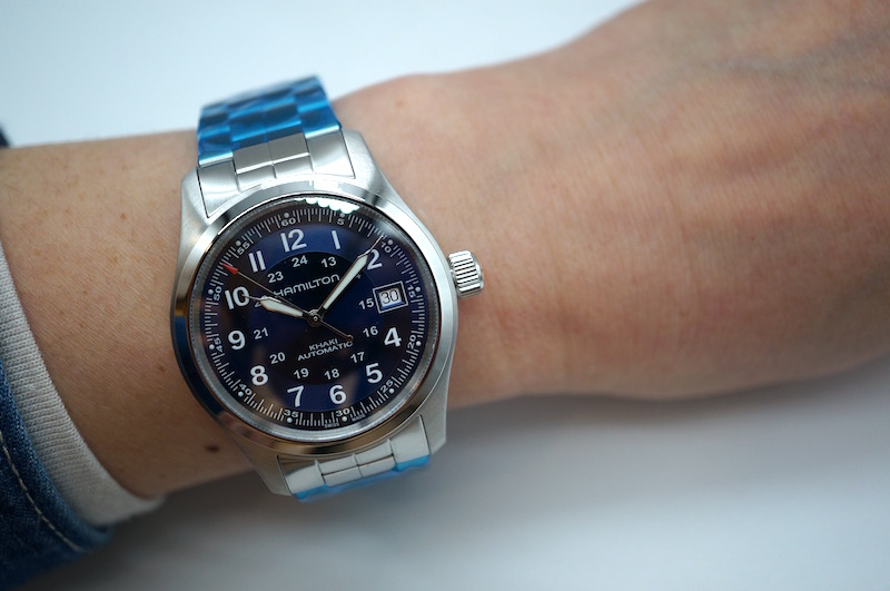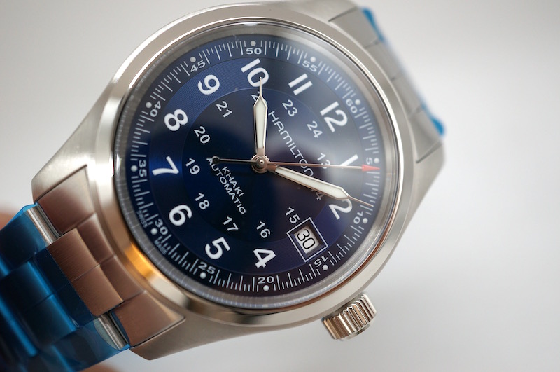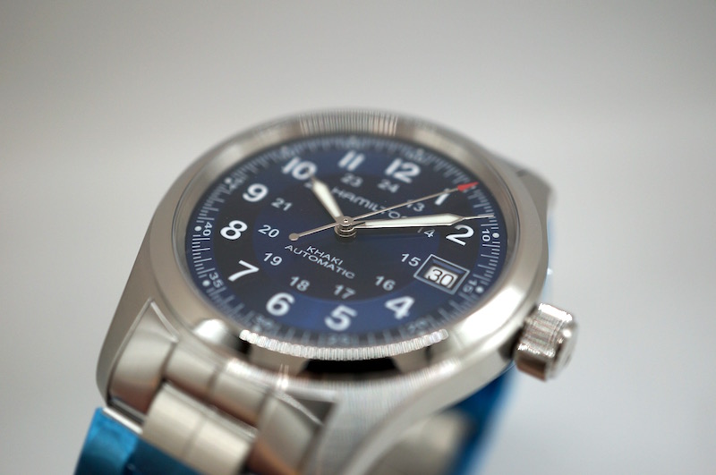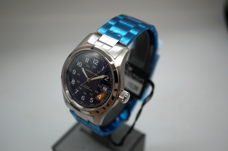 国内正規品ハミルトン NEWカーキフィールドオート38ミリ H70455140 メタルブレス BLUE