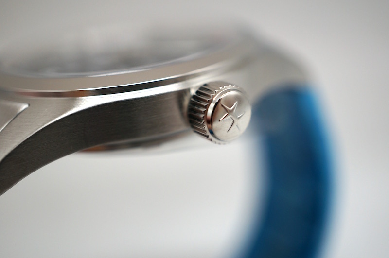 リューズ操作で一旦秒針を止め、声と同時に秒針をスタートさせるのです。