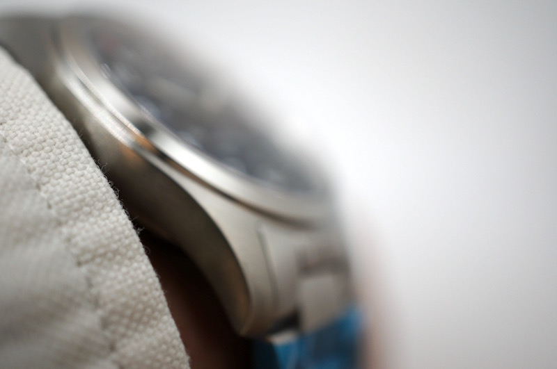 視認性の高い 24 時間表示のインデックスと 3 時位置に日付表示機能を備え、光の反射を押さえるサンドフィニッシュケー ス、軽量なボディなど、究極のフィールドで必要とされたスペックを忠実に継承しました。