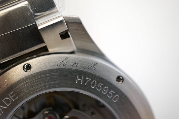 記念とお祝いとしてご依頼のランド・ホーの文字彫り・刻印サービスも完成し世界でお二人だけの特別な婚約時計になりました。