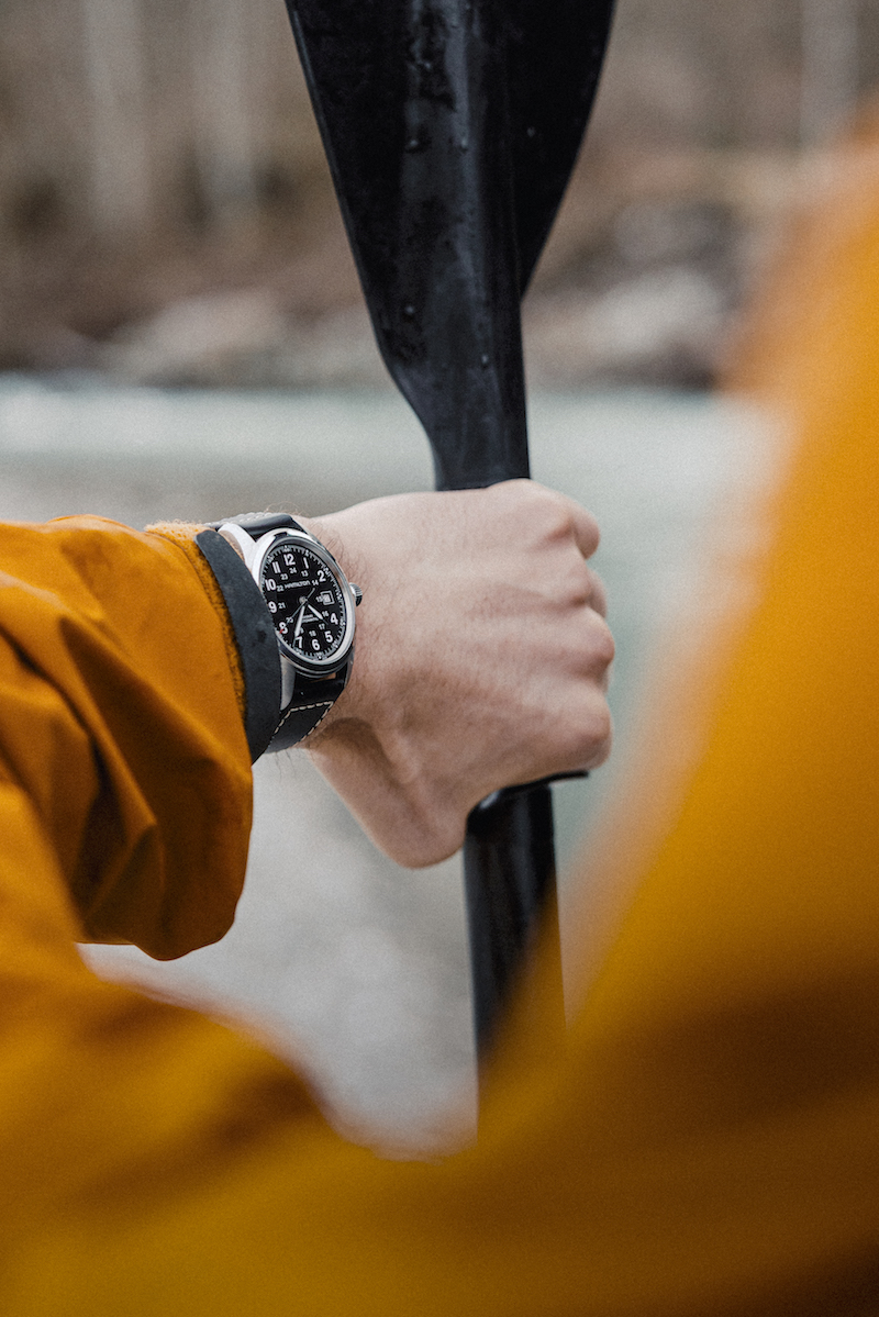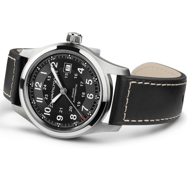 カーキフィールドオート42ミリ黒革モデル。