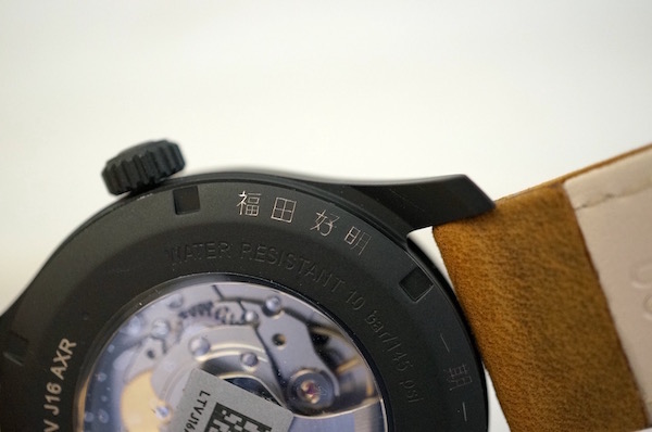 裏蓋から大切なムーブメントをお楽しみ頂けます。赤いラインは保護シールです。