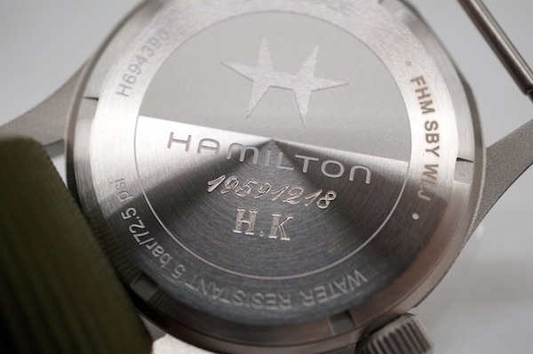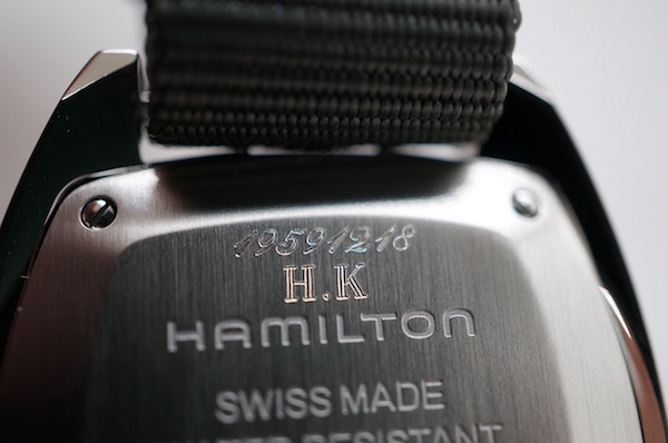 そして今回もご購入の記念に裏フタへの文字彫り刻印サービスも行い、世界ひ一つだけの特別なハミルトンウオッチになりました。