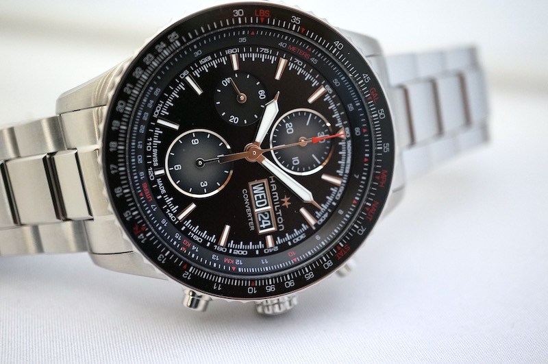 現役のトップパイロットのための最新テクノロジーに欠かすことのできない単位の計算や変換を可能にした、「カーキ パイロット コンバーター オートクロノ」。