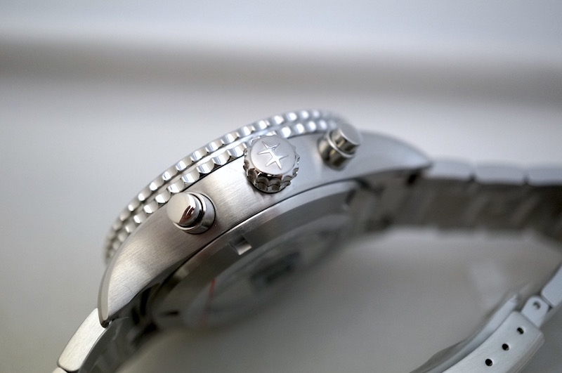 操作しやすい、回転ベゼルとリューズ、そしてプッシュボタン。