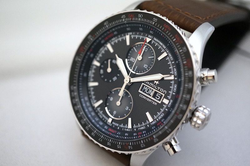 現役のトップパイロットのための最新テクノロジーに欠かすことのできない単位の計算や変換を可能にした、「カーキ パイロット コンバーター オートクロノ」。