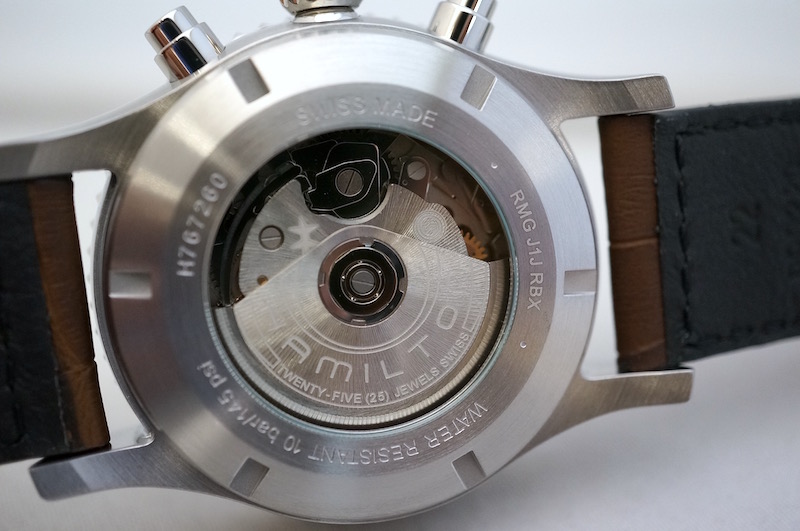 ハミルトン自慢の上質なムーブをいつでもご覧いただけます。