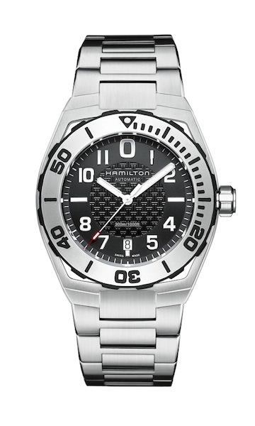 「カーキ ネイビー サブ オート」は、1928年に発売されたアールデコのモデル「パイピングロック」をモチーフにしたトノー型ケースのダイバーズウォッチ。