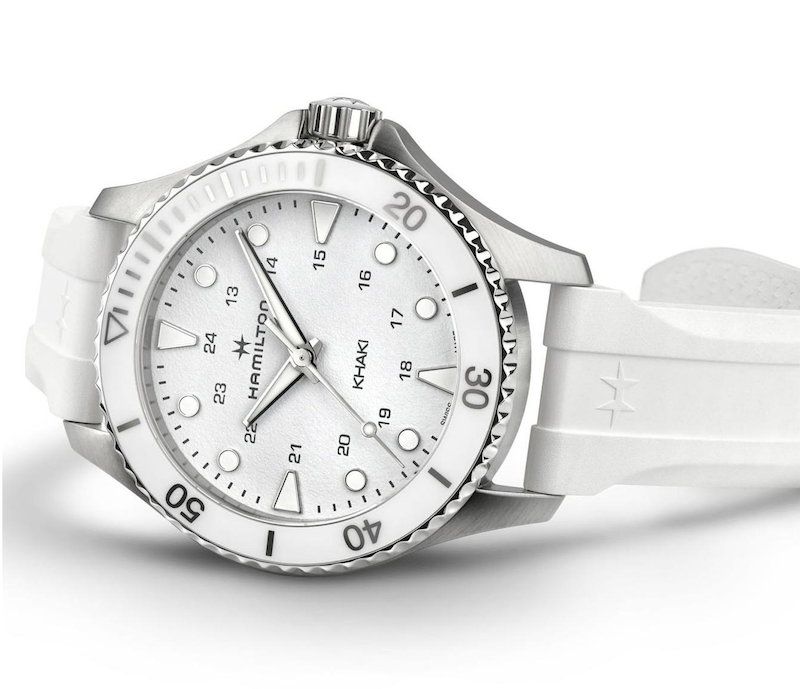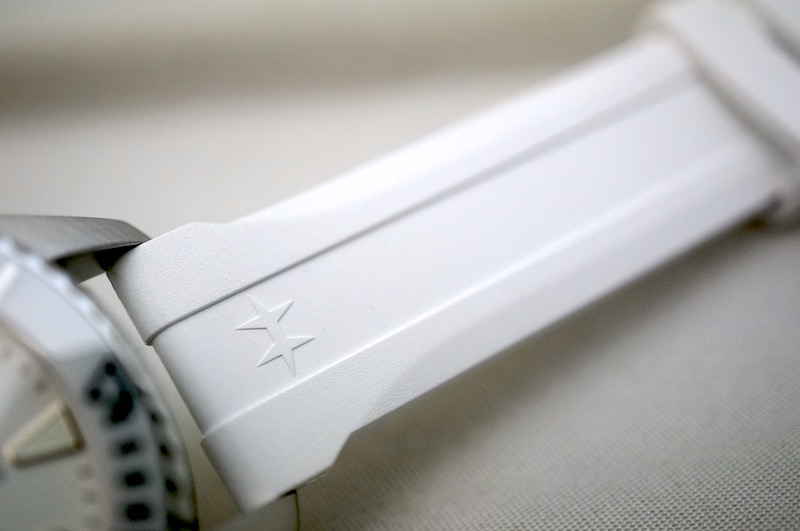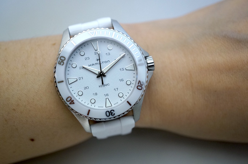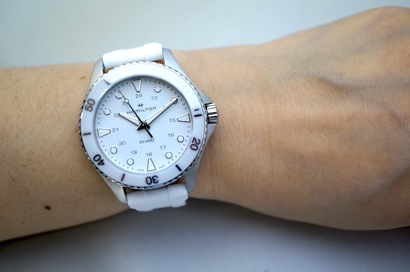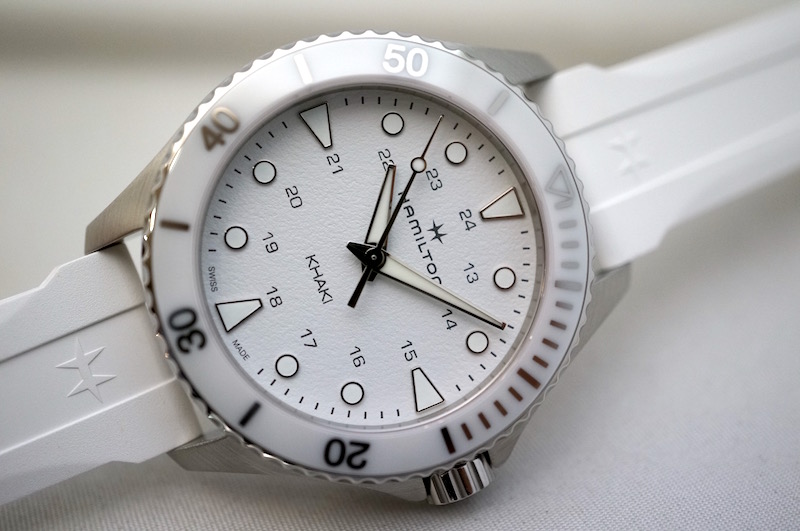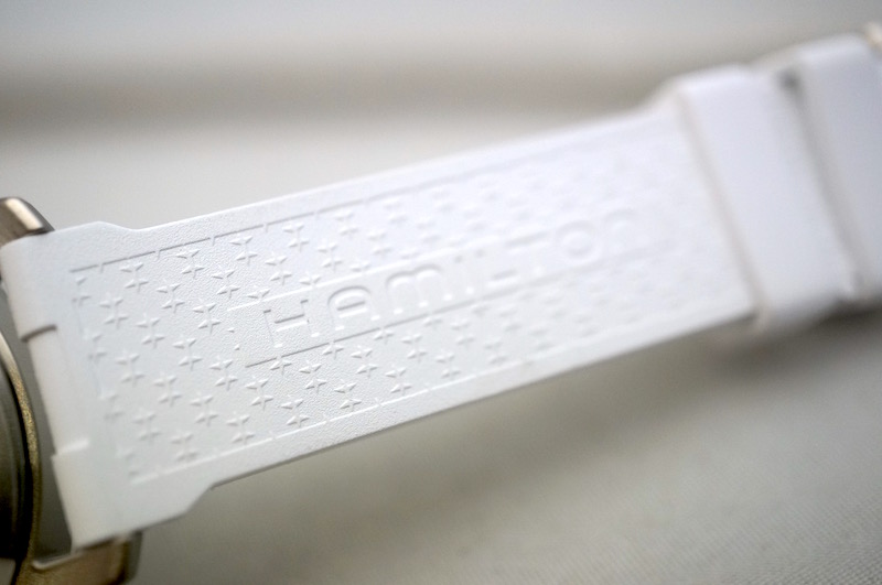 ハミルトン自慢の汚れに強いホワイトラバーストラップも魅力です。