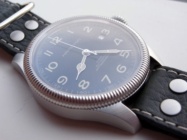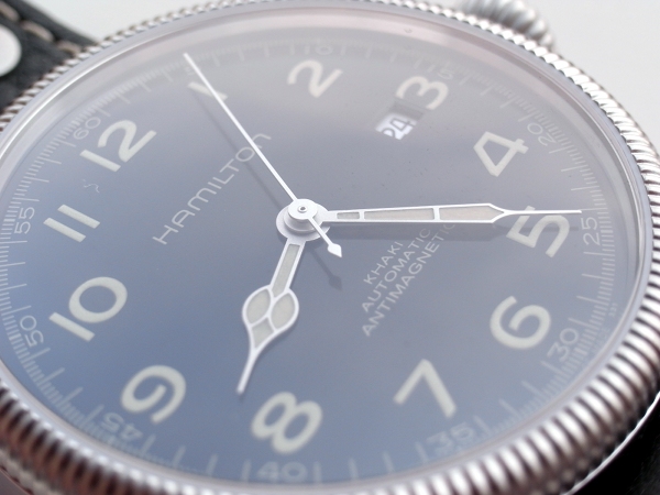 さらに、ブラックの文字盤は、インデックスに特殊色のスーパーミノルバを採用し ハミルトン独自の強いこだわりを表現しています。