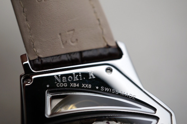 時計メーカーなどがサービスで行う印刷のようなレーザー彫刻(焼き彫り)は一切行いませんのでご安心ください。