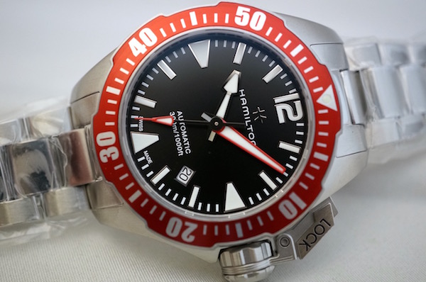 国内正規品ハミルトン カーキネイビーオープンウォーター 赤ベゼル ブレス H77725135